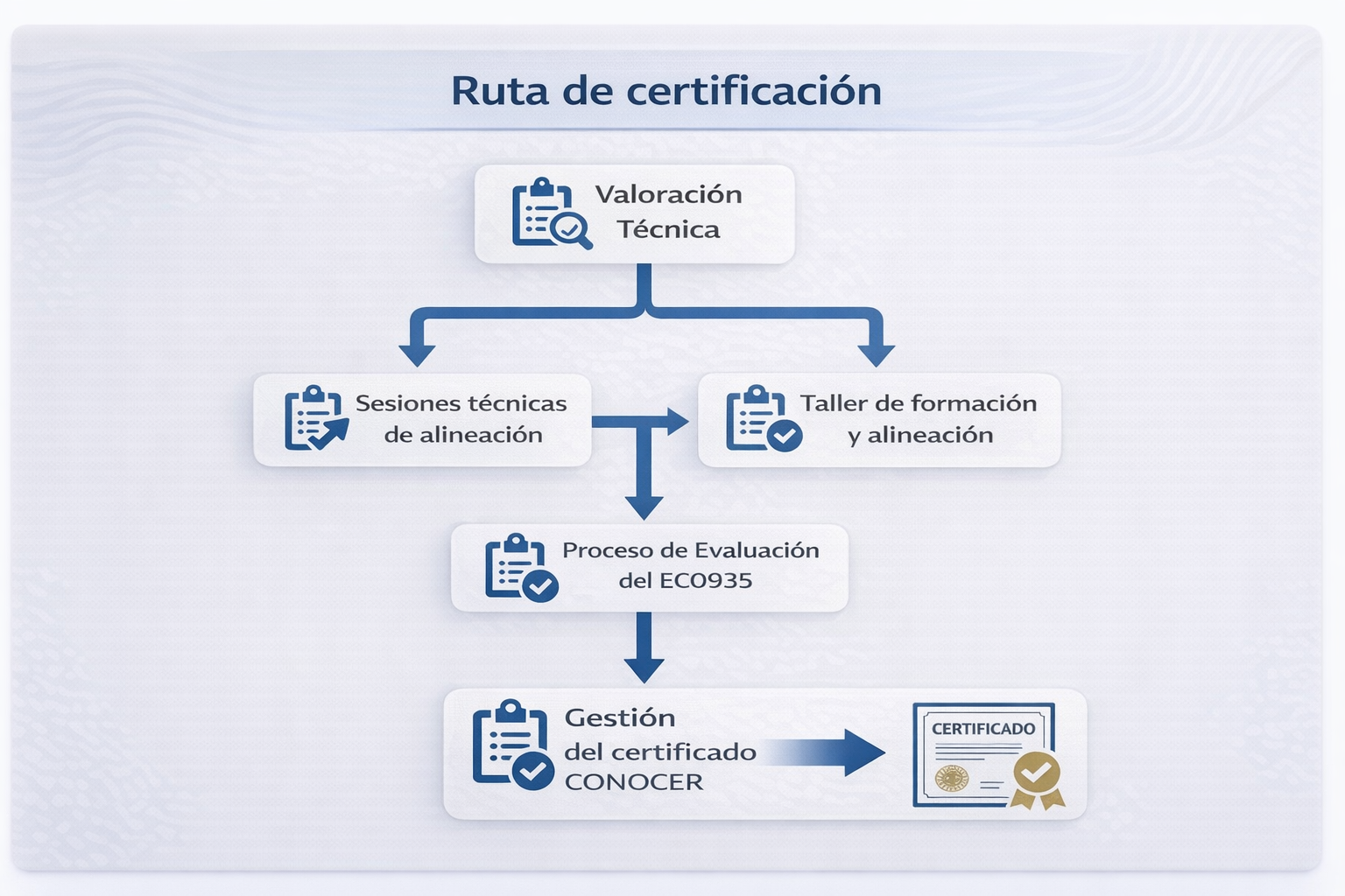 Nuestro enfoque busca facilitar el acceso a la certificación mediante un proceso claro y estructurado que permita reconocer formalmente la experiencia profesional.
